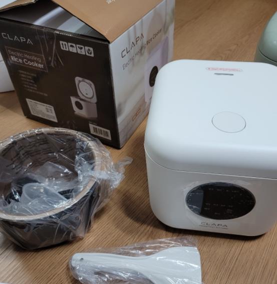 앙증맞게 너무 귀여운 밥솥이에요! 로켓배송(2022년 01월 27일 기준)으로 밥솥 아주 잘 받았어요. 도착하자마자 조심스럽게 포장을 뜯어서 살펴보았어요.