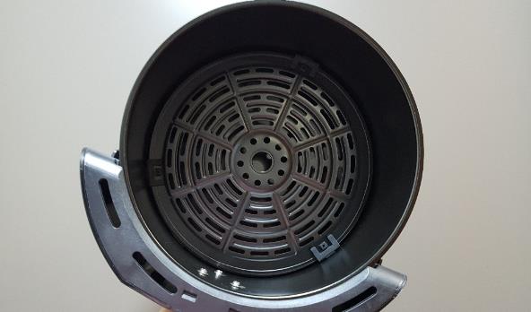 요즘 나오는 에어프라이어답게 분리형 바스켓이라 관리가 편합니다. >> 분리형 바스켓은 성인 손이 손목 넘게 들어갈 정도로 낙낙하게 큽니다. |>> 교촌 치킨 약 1/3마리, 바게트 반개가 넉넉히 들어갈 정도라고 생각하시면 됩니다.