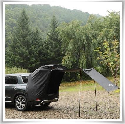 그러나 타프 연장하여 그늘막을 만들어보면 나름 센스있는 차박 분위기가 나면서 제법 쓸만합니다. 오토 캠핑장에 가면 진가를 발휘하는 듯 합니다. 타프를 치고 캠핑을 하다가도 차박텐트를 닫기 위해서는 접어야만 한다는 아쉬움도 있구요.