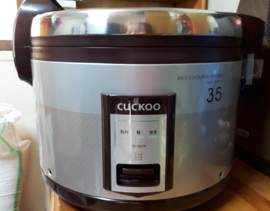 35인용이라 크기는 어마어마합니다. 처음에 잘되는지 밥을 지으셨다는데 실수로 내솥을 꺼내지않아 밑에 끼어있던 설명 종이가 타버렸대요. 그후에 다시 식혜를 만드셨는데 다행히 기능엔 이상이 없었어요. 대신 밥을 많이 하니까 약간 눌어서 한마디 하셨네요 하하!