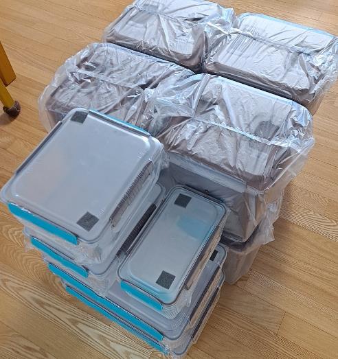 투명Ez용기: 4.2L 1EA(275×150×150), 6.9L 2EA(275×230×150), 13.3L 2EA(275×415×150)