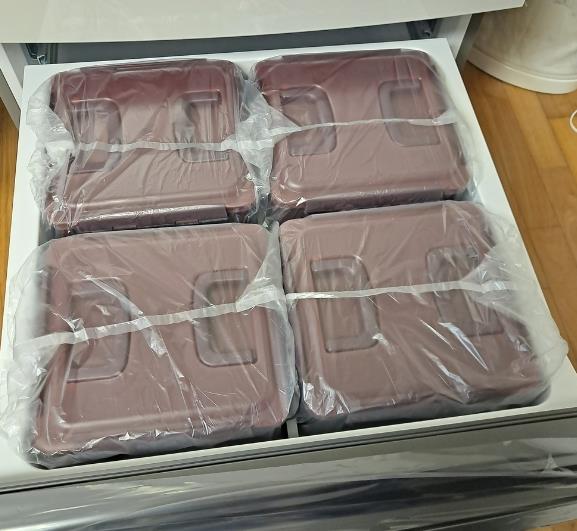 그래서 저는 그때는 윗칸을 김치를 보관하는 데 주로 사용하고 아래쪽은 채소나 과일 등을 보관하는 데 이용했습니다. 그런데 이 제품의 경우 김치 냉장고 중에서도 큰 용량을 가짐과 동시에 냉각기를 상부로 뺀 특징을 가지고 있어서 그런지 중실과 하실에 김치통이 각각 4개씩 총 8개를 보관할 수 있으며 서랍을 뺐을 때 63cm 정도 뺄 수 있는 성능을 보여주었습니다.