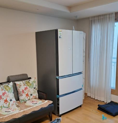 설치의 경우 사전에 기사님들이 연락이 오셔서 시간대를 조율한 후 설치하게 되는데 처음에 들어오실 때 저희 집의 경우 엘리베이터로 올라오셔서 복도에서 상자를 분해하신 뒤 두분이서 어깨에 메는 받침대로 김치냉장고를 들고 설치하려는 곳까지 들어서 모셨습니다.