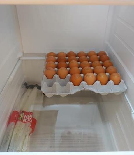 2) 냉장고 깊이가 생각외로 깊네요. 냉장고 겉모습만 보았을 때는 그렇게 크다고는 느껴지지 못했는데요. 근데 냉장고 문을 열어본 후에는 사진처럼 계란 한 판을 넣었을 때도 냉장고 공간이 남을 정로도 되어 있어서 깊이가 충분히 깊네요. 냉동실 역시 전체적인 형태도 길고 넓어요