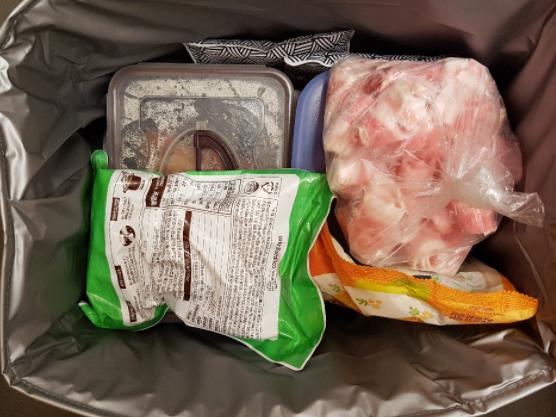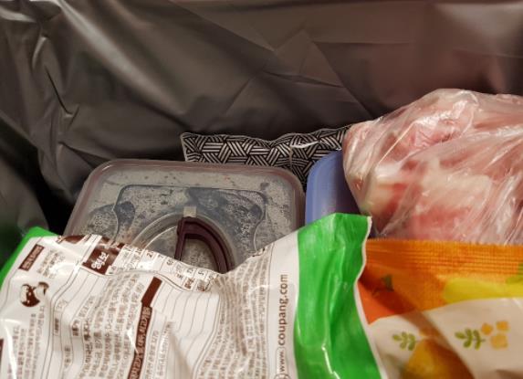 꺼내자마자 쿨러백 소재에서 약간의 화학 냄새가 납니다. 하지만 하루정도 베란다에 두니 화학 냄새는 다 빠지더군요.