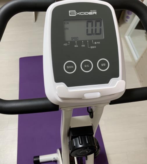 일단 들어있는 건전지를 딱 끼우니 삐하면서 시험삼아 타보니 칼로리, 시간 등등 운동할때 도움이 되는 기능들이 보였구요. 일단 1일차라서 30분 맞춰둔 다음에 약하게 운동을 해보았어요! 몸이 후들후들하는 느낌에 몸에서 땀도 나고 하는거 보니 오래 꾸준히 강도를 높여서 하면 다이어트는 될 것같네요!! 제발!꼭!!! 그렇게 되었으면 좋겠습니다.