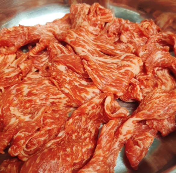 신선해서 육즙도 잘 머금고 있어요. 불고기감이다 보니까 고기가 그렇게 두툼한 편은 아닌데 그럼에도 불구하고 딱 씹었을때 신선한 고기 특유의 쫄깃한 질감과 풍부한 육즙이 마음을 사로잡았어요.