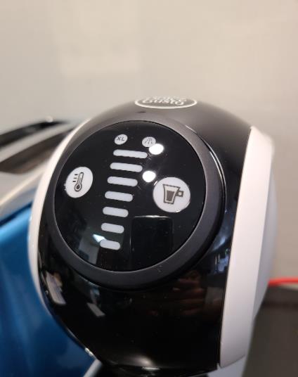 Hot Cold로 나눠져 있는 추출레버가 없어지고 커피잔 모양의 추출 버튼이 생겼습니다. 그래서 원부분에 거슬리는 것 없이 미끈한 모양이 되었습니다.