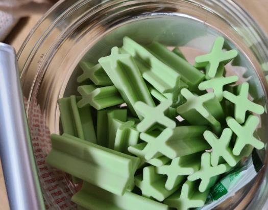 냄새도 넘좋고 상큼하고 질도 생선베게껌처럼 적당히 딱딱한편이라 9살 노견 5살아들견 둘다 아주 만족해하며 맛있게 먹였어요. 다른 덴탈껌도 많았지만, 이제품이 후기도좋고 상품질도 좋고 먹이고나서 아무 문제도 없었고, 입냄새도 줄어들고 전 완전 좋네요~!!